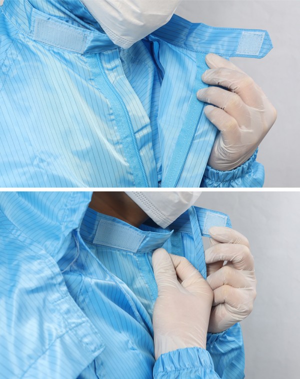 상하의가 붙어 있는 클린룸에서