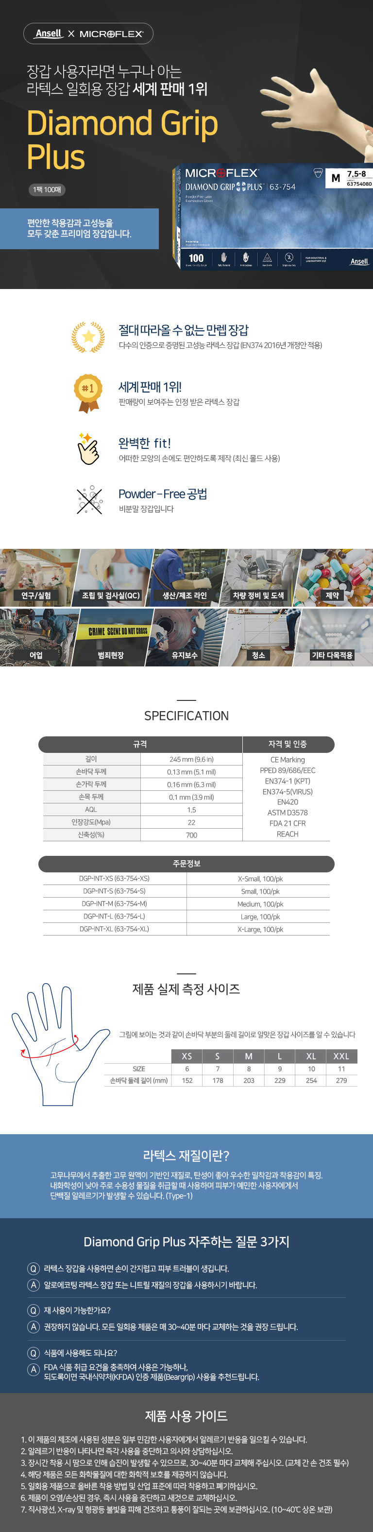 크린 사업장에서 사용 가능한 프리미엄 라텍스 장갑
