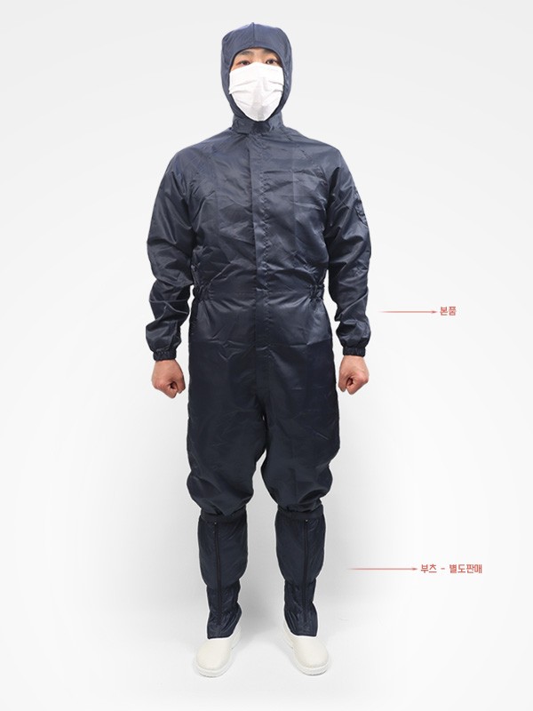 정전기및 파티클 방지를 위해 폴리에스테르나 도전사등의 원단으로 만든 옷