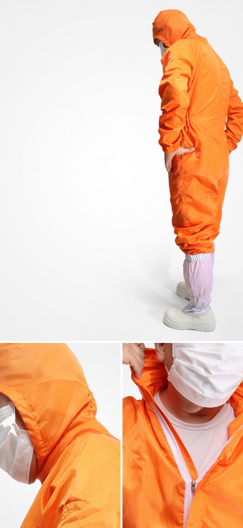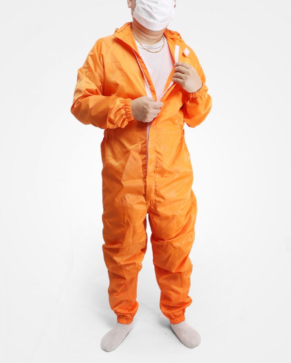 상하의가 붙어 있는 클린룸에서