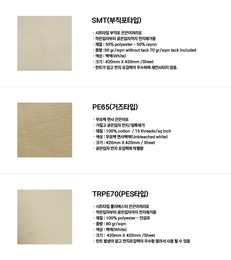 부직포 타입, 거즈타입, PES타입