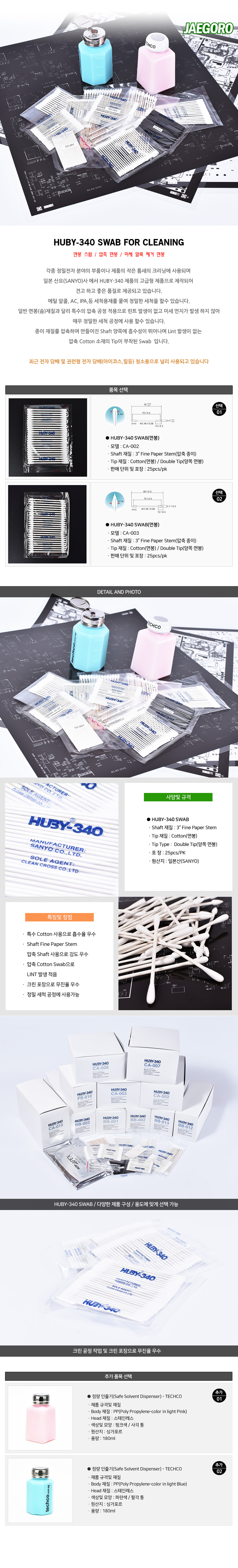 HUBY-340 SWAB 크린 스왑 면봉 CA-002 CA-003