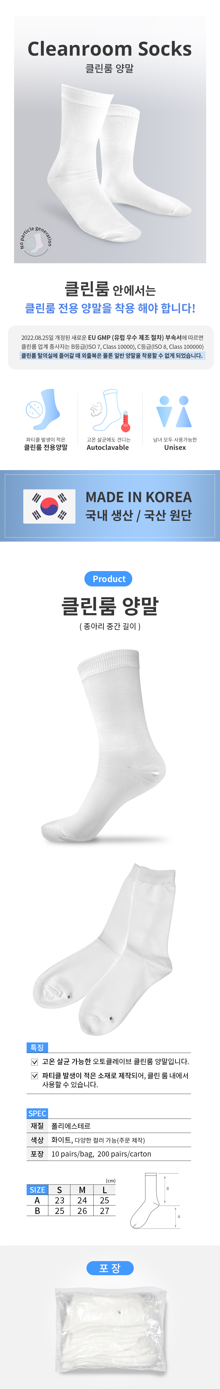 GMP 크린룸 양말 CLEANROOM SOCKS 10족